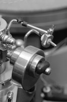 Jede kleine Schraube, jeder Übergang ist jetzt behandelt - jede Stelle, von der ich glaube, dort könnte es resonieren. Nicht zu vergessen sind die Anschlußpins am Tonabnehmer selbst. Eine kleine Kugel Kitt wird direkt zwischen die Käbelchen gelegt und stellt sie damit ruhig. Natürlich muß nach einer solchen Behandlung die Auflagekraft neu justiert werden. Überhaupt empfiehlt es sich, alle paar Wochen mit einer Pinzette die Stecker des Tonarmkabels einmal abzuziehen und wieder aufzustecken. Verwunderte Gesichter sind da nicht selten.